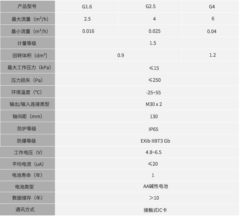 该产品具有机械计数器和电子计数器双重同步显示计量的家用燃气表,造型美观,计量准确,读数清晰方便,是当前最为理想的家用燃气计量仪表,表壳体有铝制和钢制两种供选择。产品符合国家标准GB/T6968《膜式燃气表》和国家检定规程JJG577《膜式燃气表》的规定。
